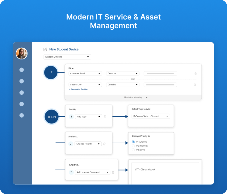 Deliver ITIL-aligned support with an integrated service desk, call center, user portal, knowledge base, and asset management. Gain device-level visibility and streamline SRDs, escalations, and workflows for staff, students, and parents.
