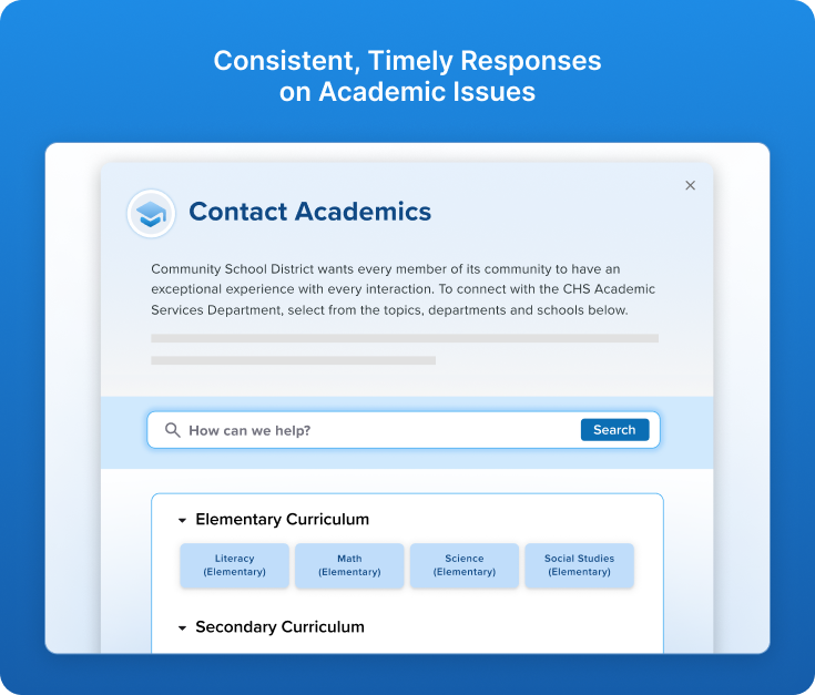 Centralize and track parent concerns from curriculum questions and grading disputes to program access and instructional quality—ensuring clear, policy-aligned responses across the district.