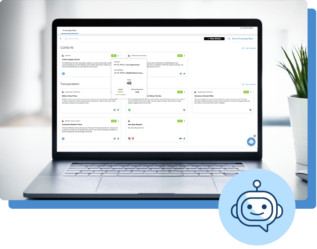 Let’s Talk Knowledge Base streamlines the school help desk experience by offering a self-serve online library of help articles and the latest, most accurate information about your district.